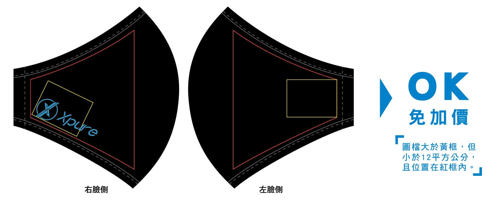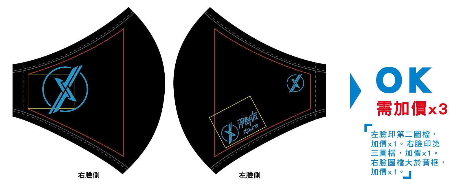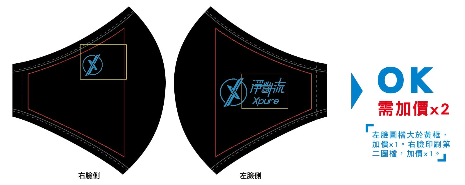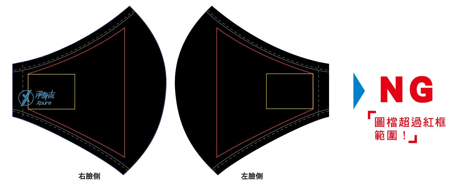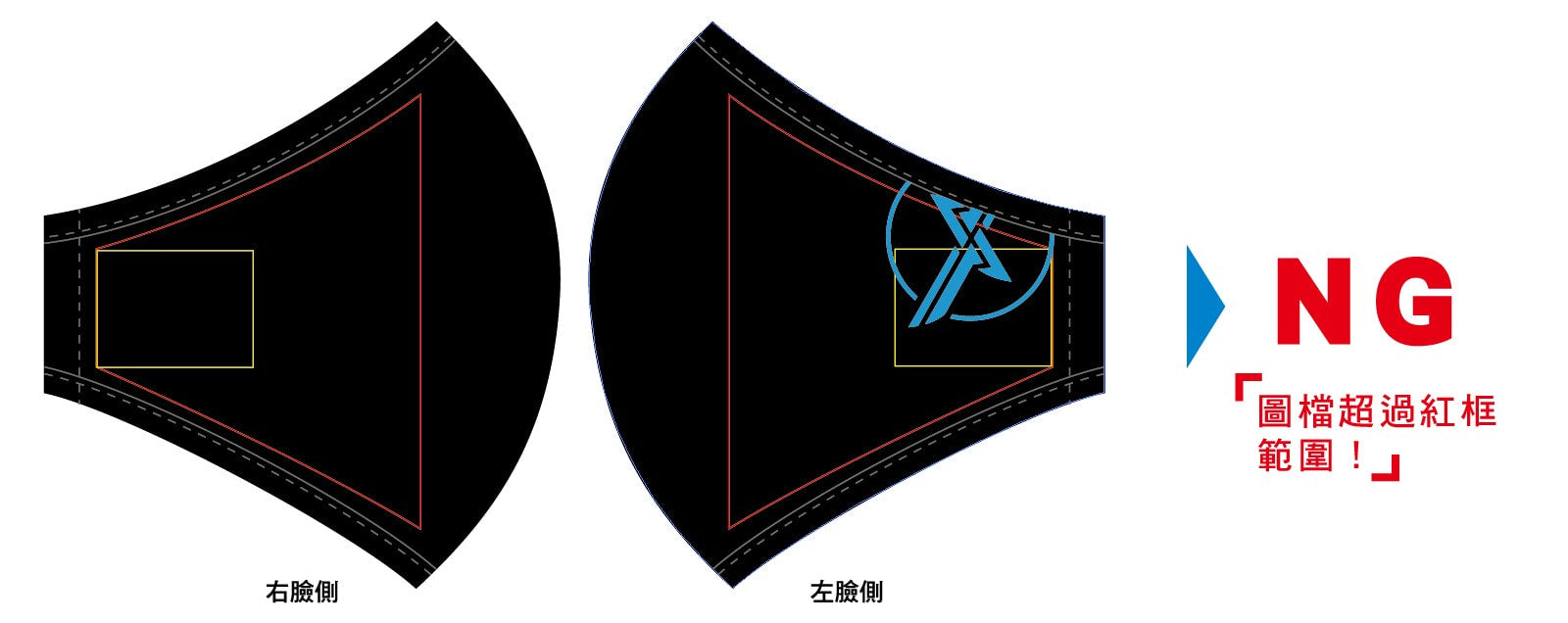 - 註2:口罩有左右臉兩側,每側可印刷的圖案數量可不只一個,請參考下方製檔範例。