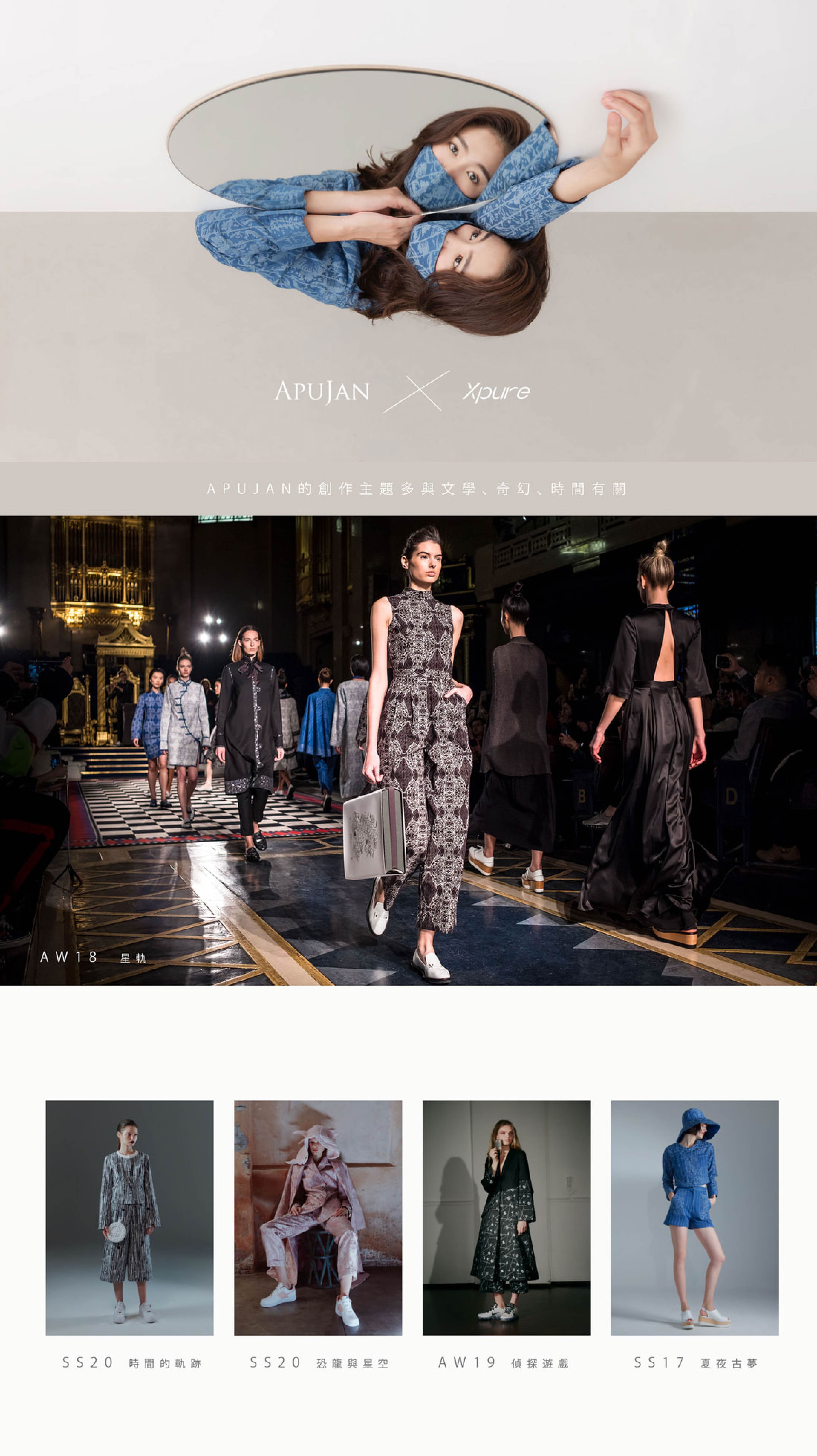 APUJAN為國際知名的時裝設計師,生長於台灣,旅英時在倫敦時裝界嶄露頭角,主攻女裝,並擅長針織技藝。其針織系列作品國際評價之高,於2017年受邀進入法國知名「時尚與蕾絲博物館」作長期展出並列為永久館藏。想知道更多嗎?可以參考APUJAN官方網站