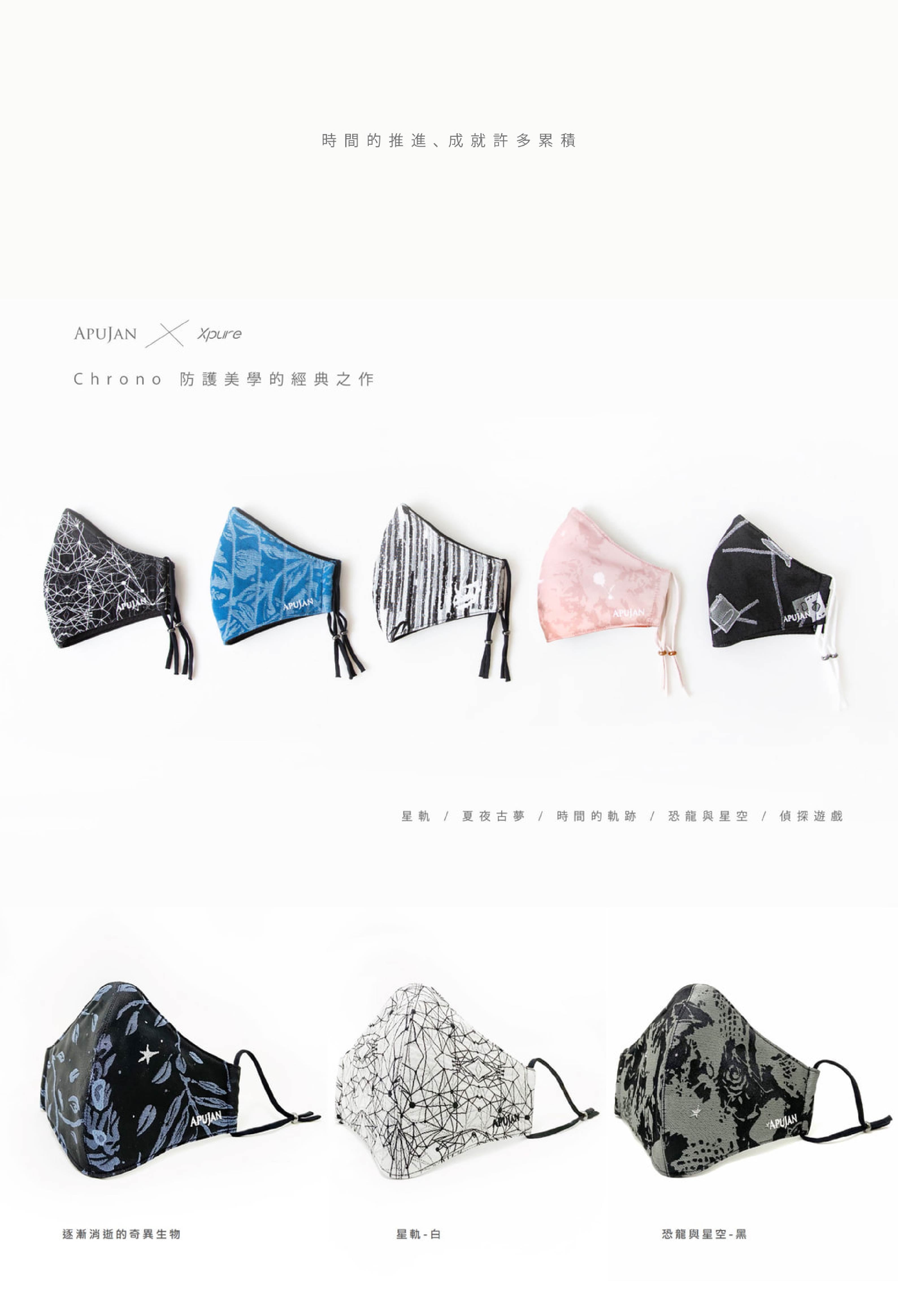 It's also worth mentioning that the mask which Tzu-Yi Mo wore in this film is the newest design of APUJAN x Xpure Chrono Mask, named "In Dream, we investigate."