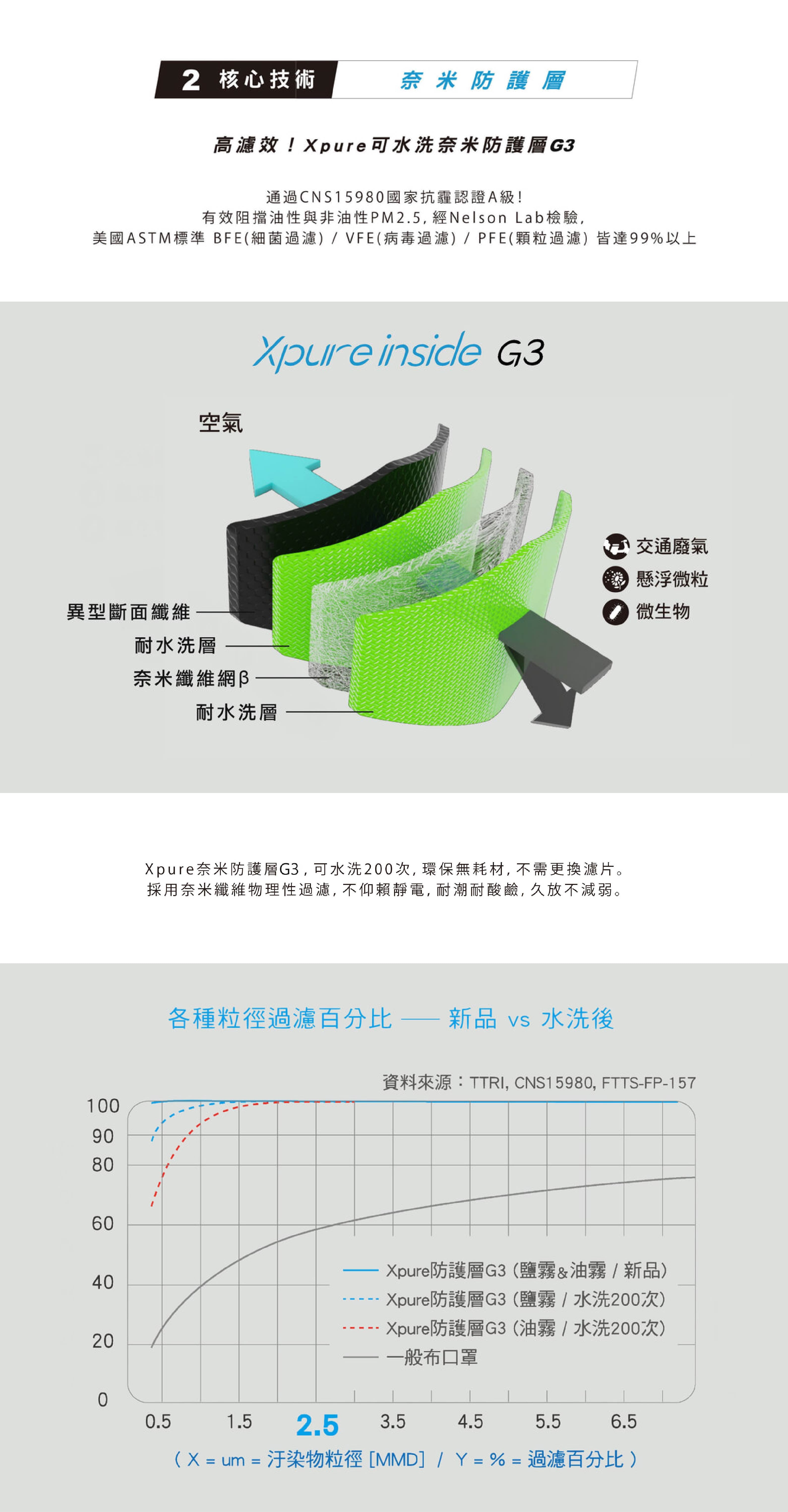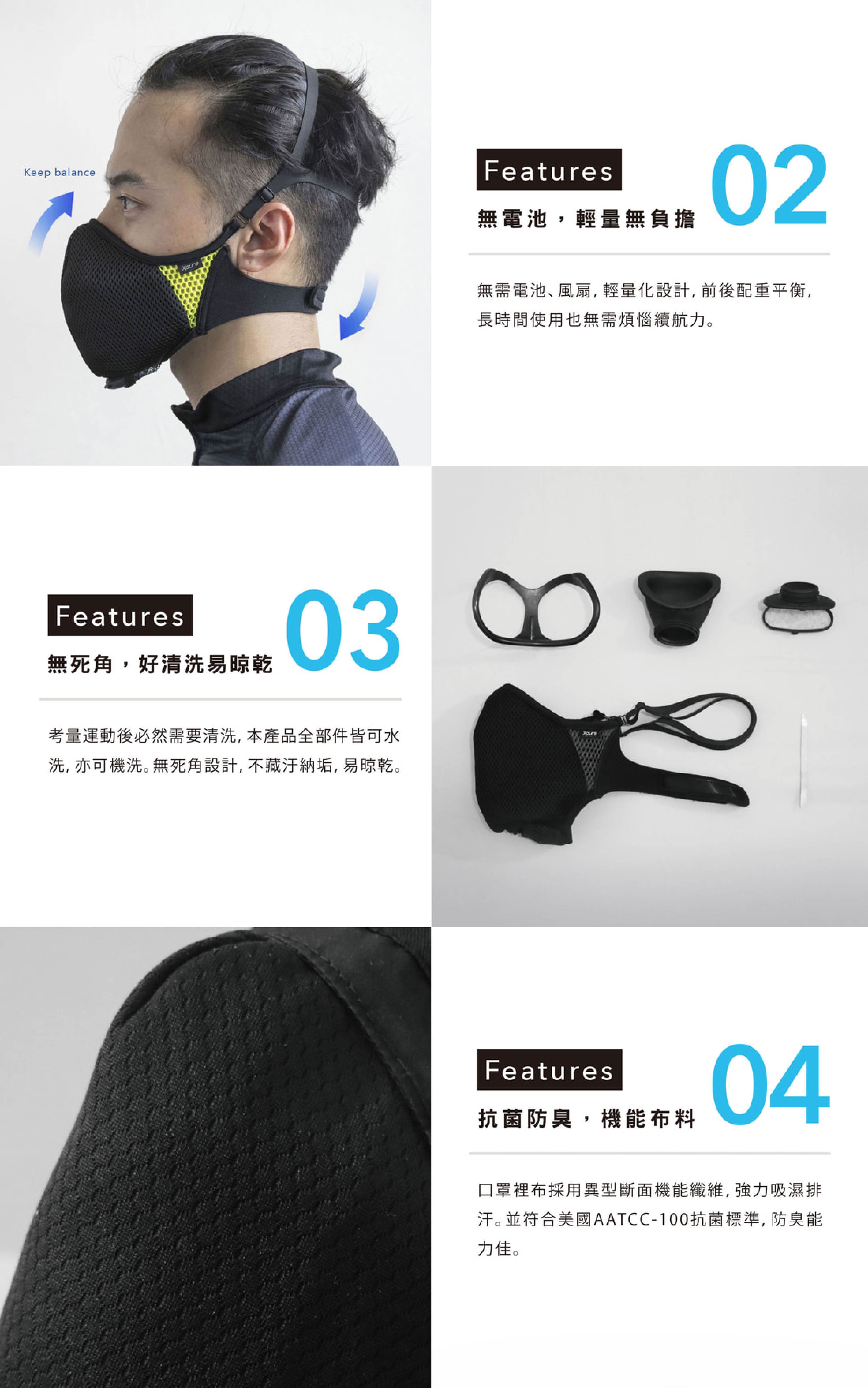 - 搭載Xpure Inside G3濾材,可水洗200次、無需更換的N95等級專利濾材。