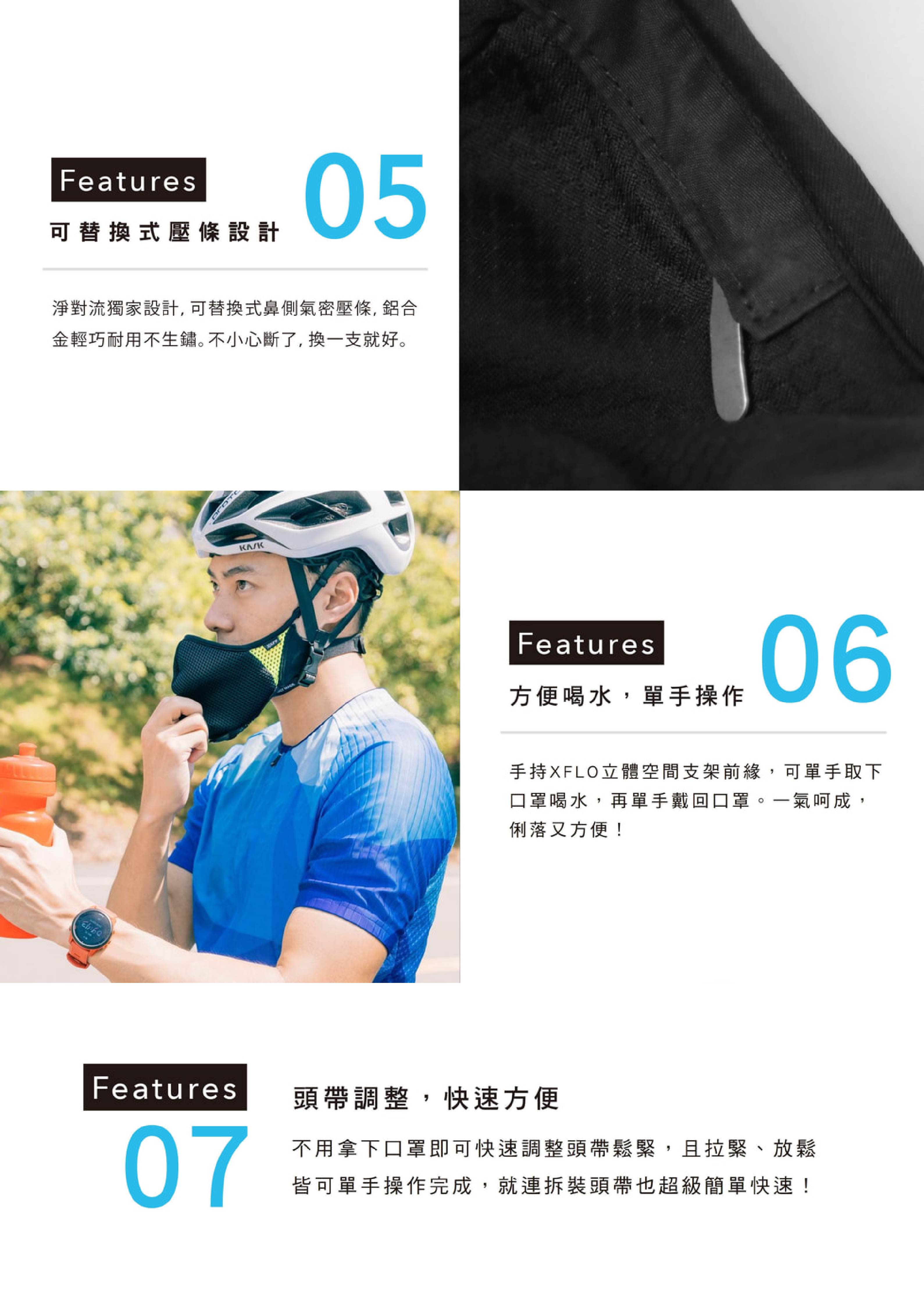- 國體專利XFLO系統可完全阻隔呼出之熱氣與二氧化碳,達到世界唯一「零悶熱」效果!