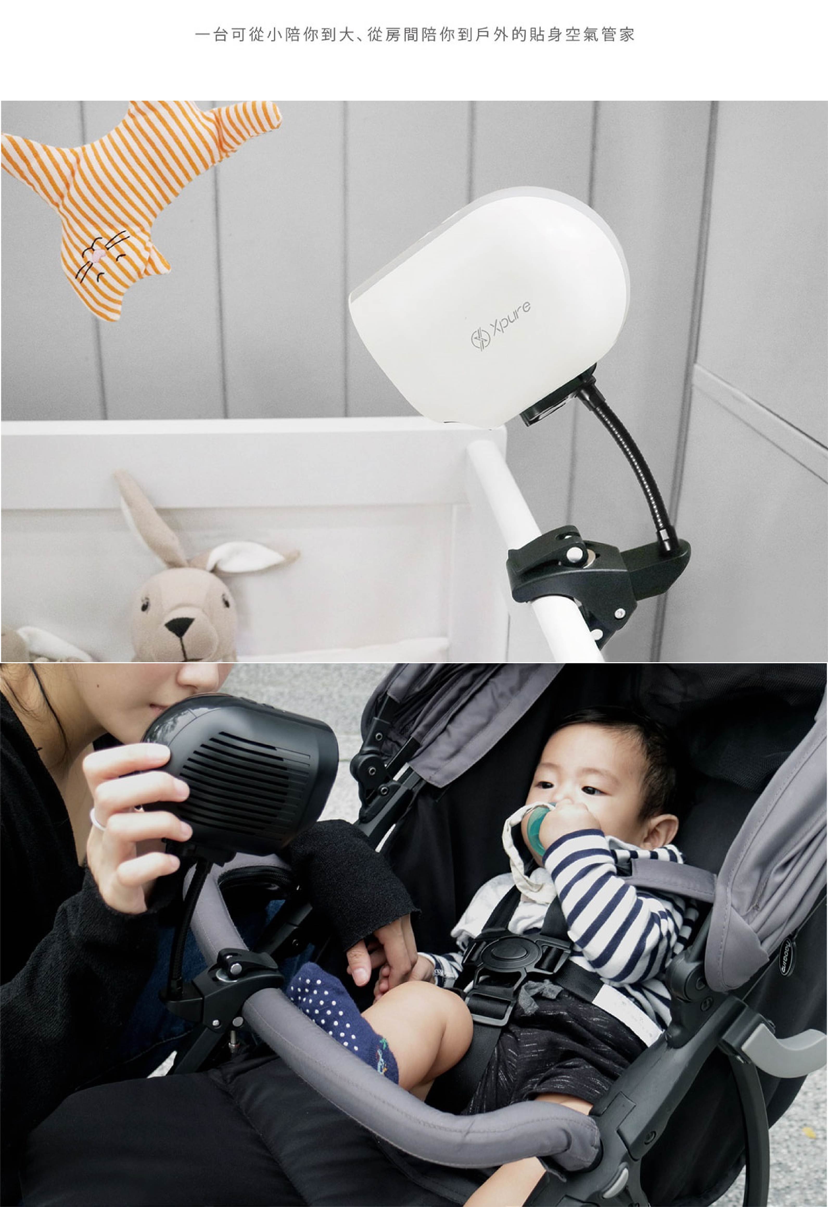 - 萬向夾具可夾持於嬰兒車、家具、車內等物品上。