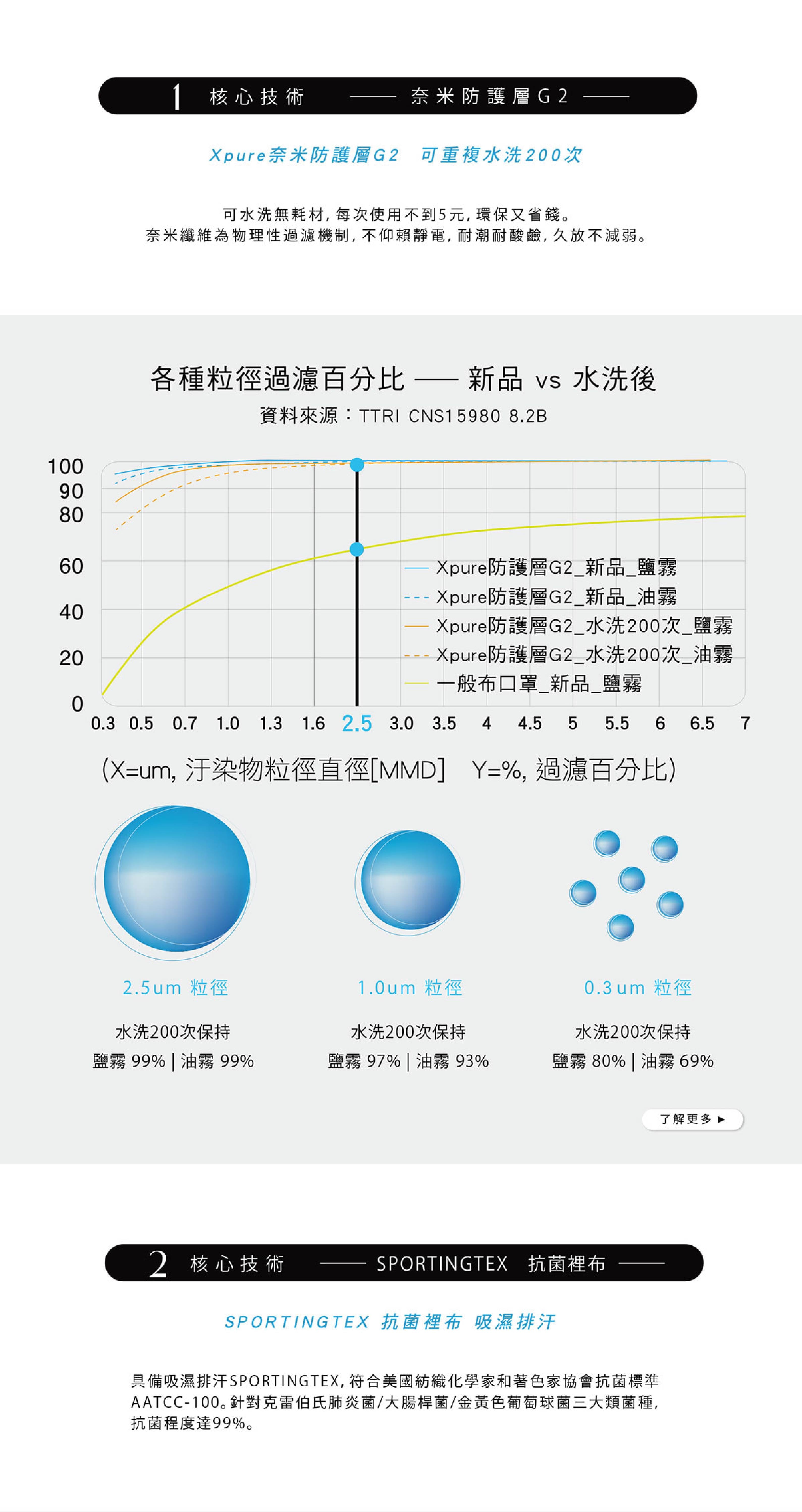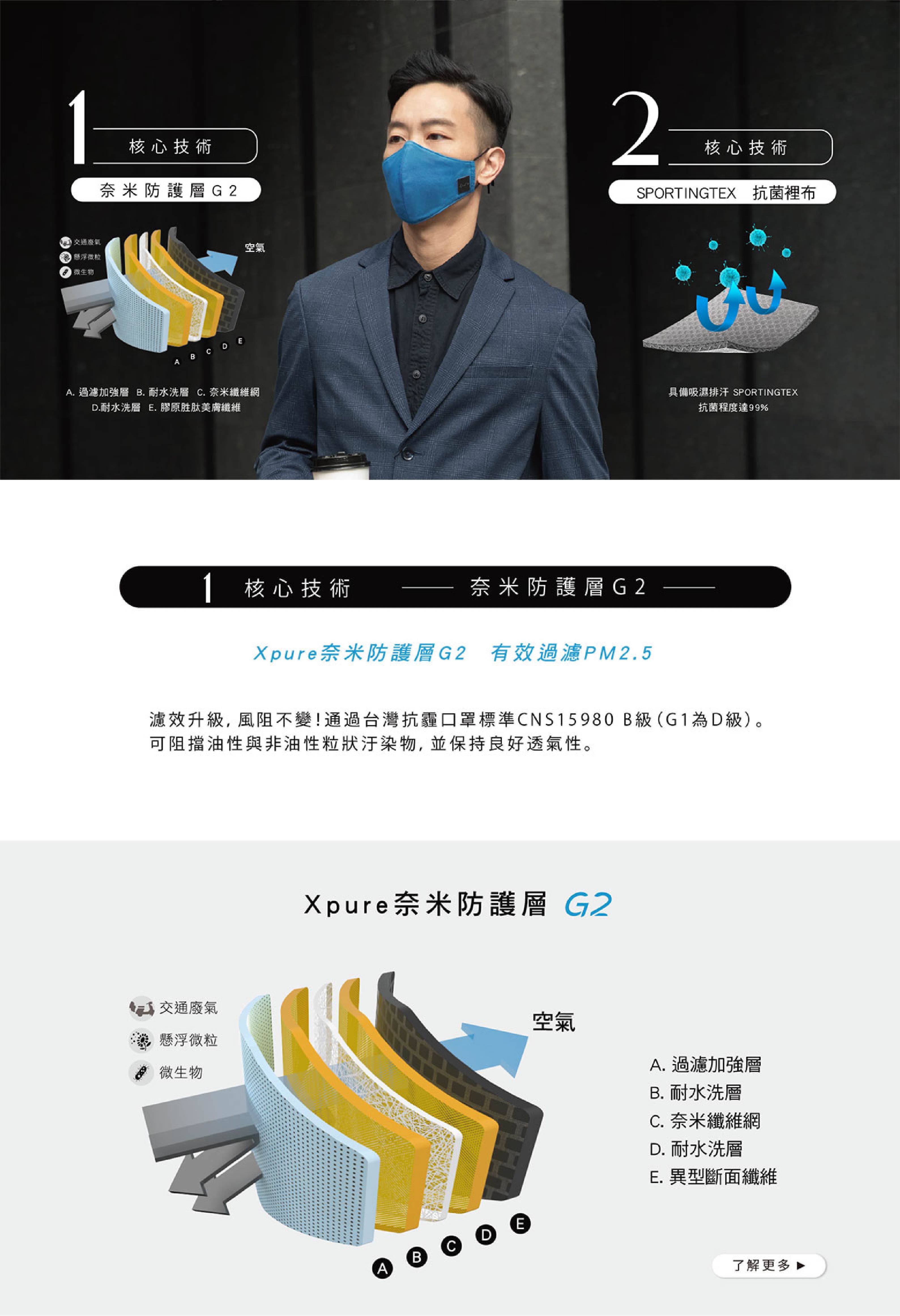- 採用Xpure Inside G2濾材,國家防霾認證B級。