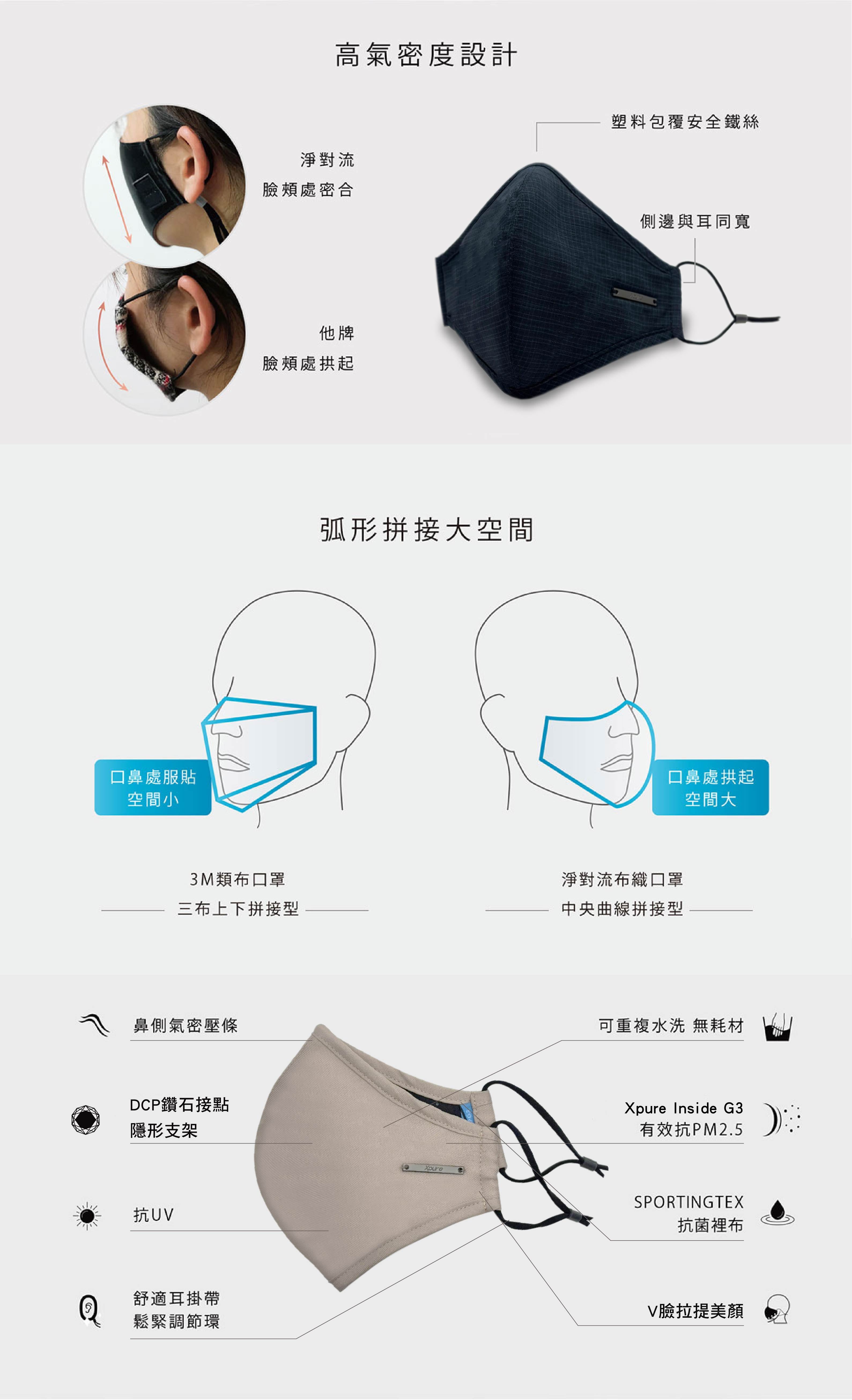 - 採用Xpure Inside G3濾材,過濾更好,更透氣