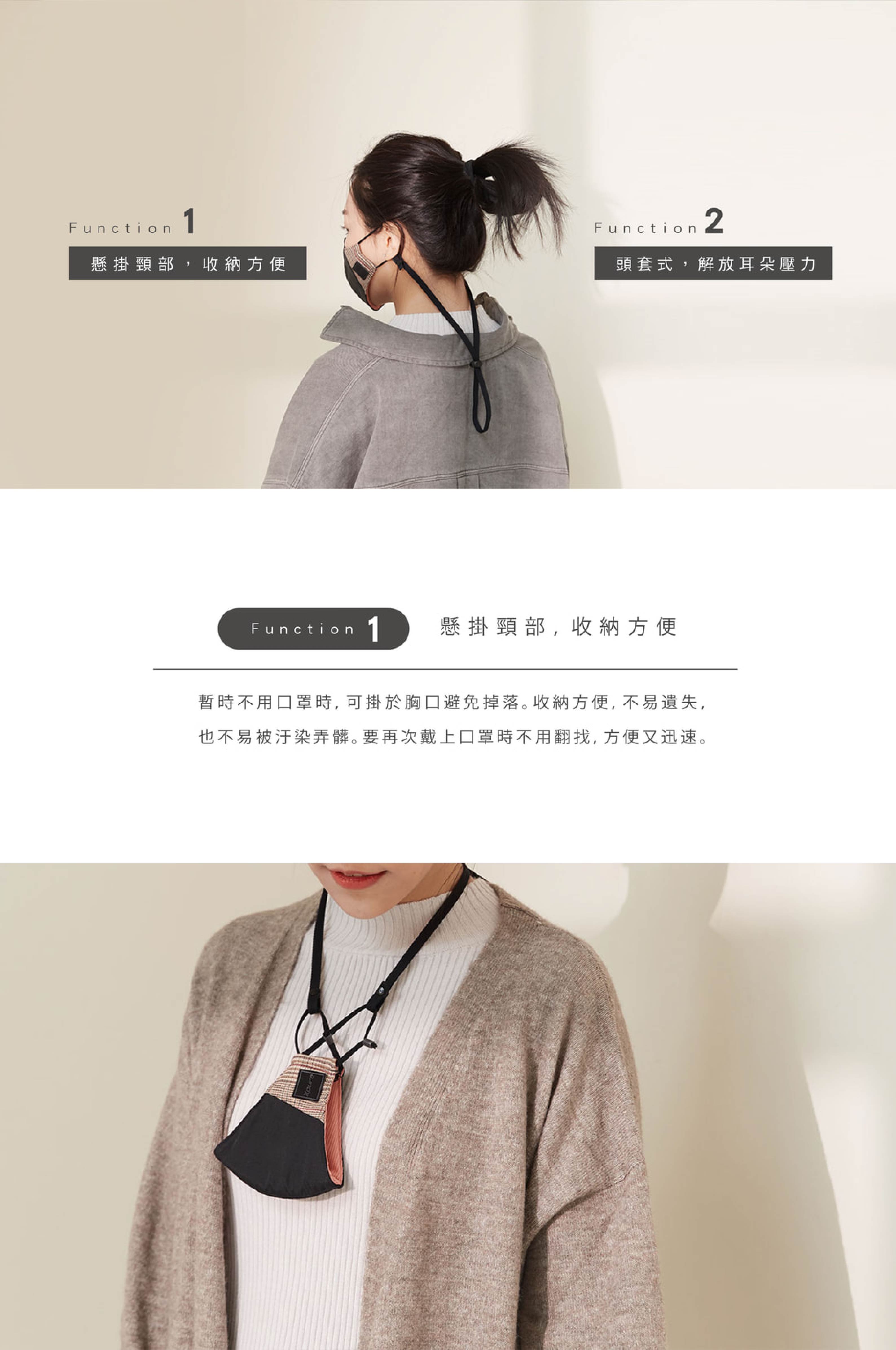 - 口罩暫時不戴時,可掛於胸口,收納方便,避免掉落。