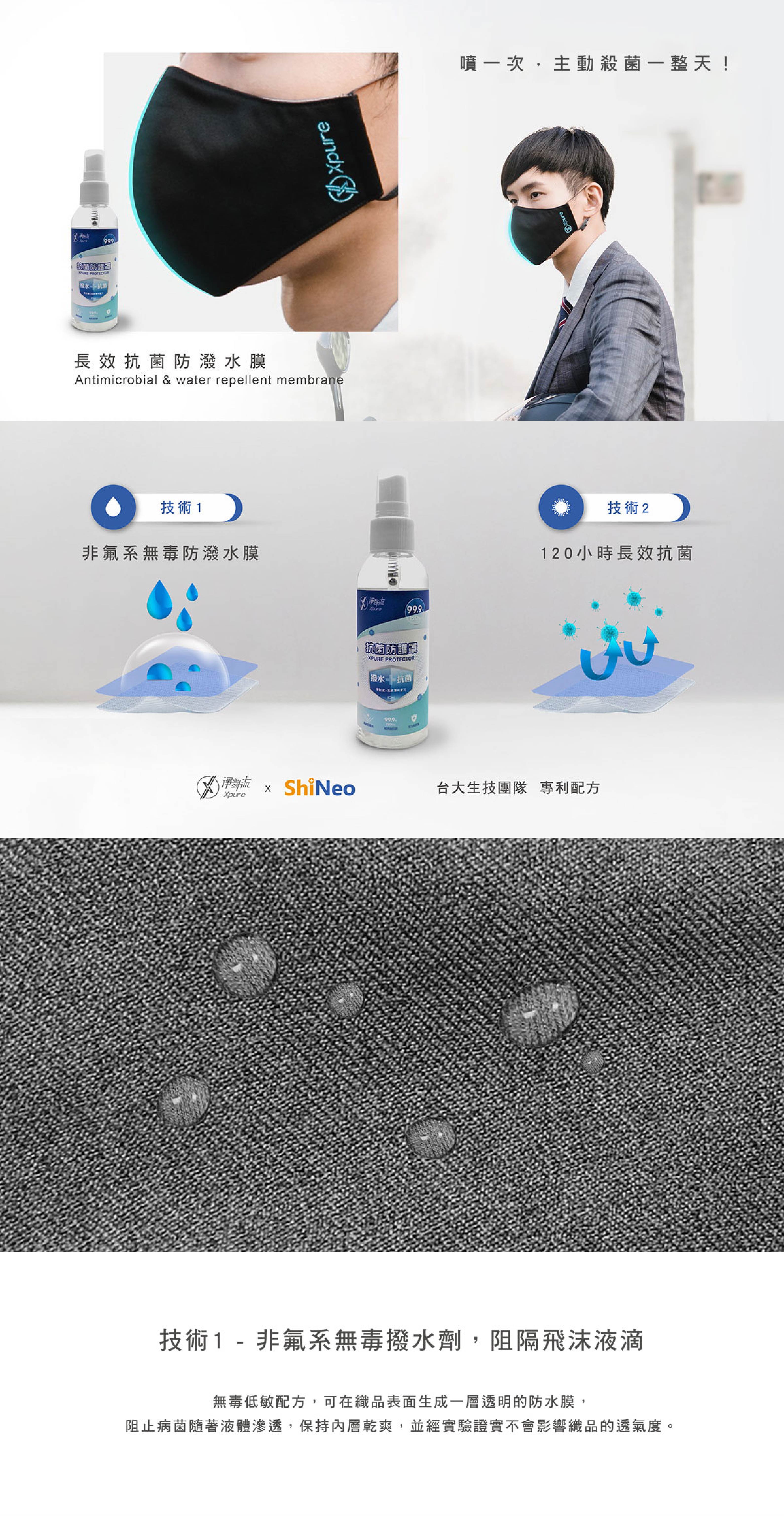 除了口罩,也可以噴在其它有「長效抗菌 or 防潑水」需求的紡織品表面: