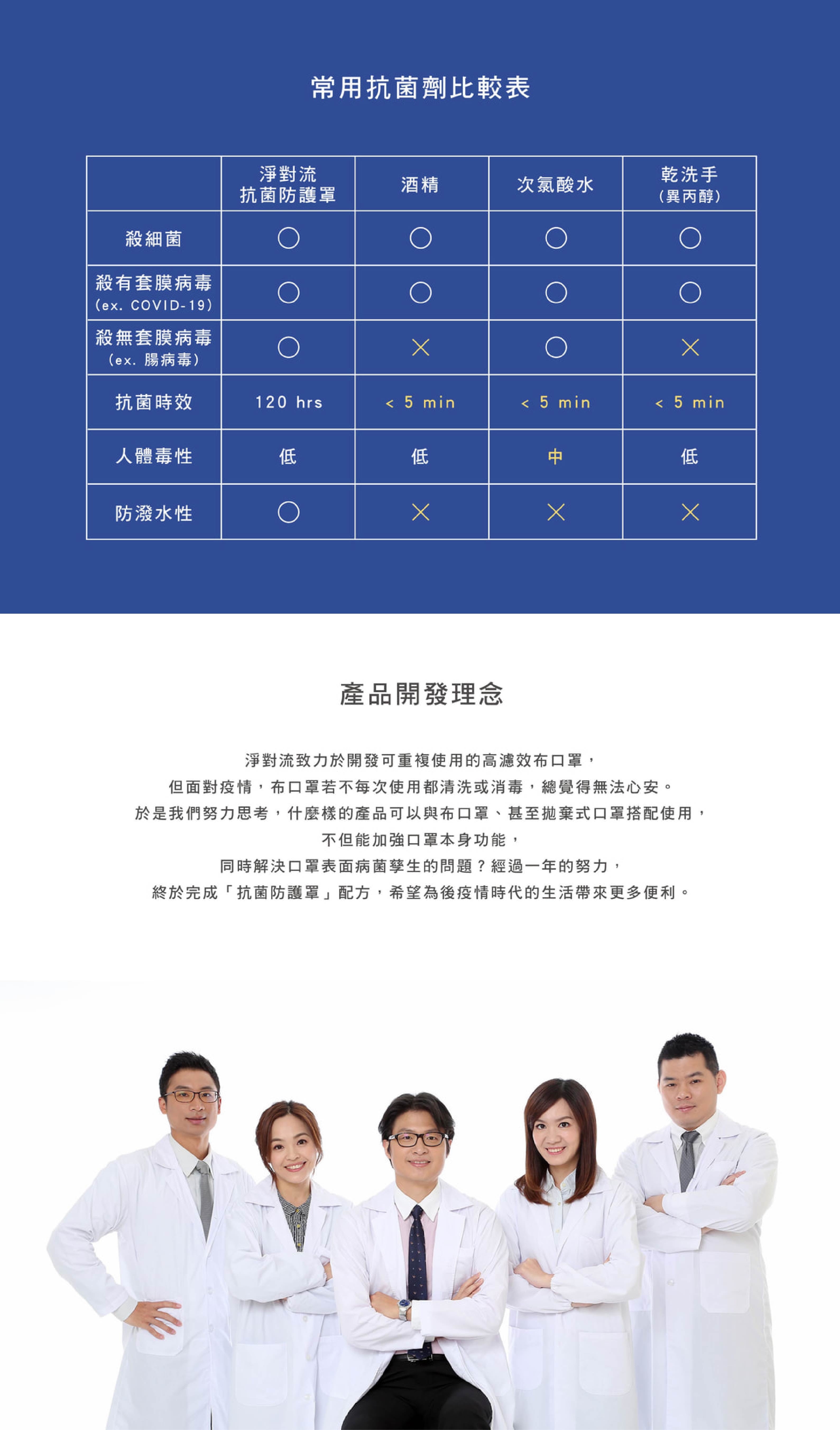 另外,美國國家環境保護局(EPA)與加拿大衛生部都在其網站明文認可四級銨鹽為有效阻殺COVID-19的成份喔!但一般四級銨鹽溶液若乾掉就漸漸無效了,淨對流是如何讓四級銨鹽達到長效抗菌呢?秘訣就在「防潑水劑」(或稱撥水劑)。我們用特殊的製程,將四級銨鹽與防潑水劑均勻融合。於是防潑水劑可以牢牢抓住紡織品的纖維,防潑水劑又可以牢牢抓住四級銨鹽,於是紡織品的纖維就變得可以長效殺菌了!而這也是淨對流與旭諾生技的專利技術所在。